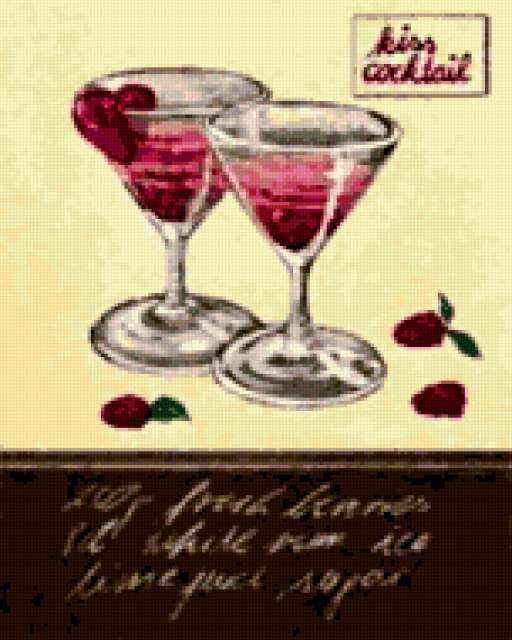 Ориентировочно так, схема вышивки «Cocktail Deliciousness», созданная автором me4o, будет выглядеть при отшиве на канве. Размер данной вышивки равен 152x190 крестов, при этом используется 48 цветов. Ключевые слова, по которым можно найти эту схему: cocktail, delicious, exotic, kitchen. Также, вы можете взглянуть на оригинальную картинку, соответствующую данной схеме вышивки.
