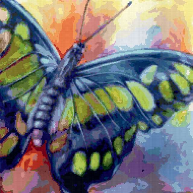 Ориентировочно так, схема вышивки «Colorful Butterfly», созданная автором pandreevska, будет выглядеть при отшиве на канве. Размер данной вышивки равен 190x190 крестов, при этом используется 63 цветов. Ключевые слова, по которым можно найти эту схему: бабочка, рисунок, картина, декорация. Также, вы можете взглянуть на оригинальную картинку, соответствующую данной схеме вышивки.