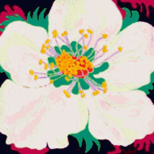 Ориентировочно так, схема вышивки «Colorful Flowers», созданная автором pandreevska, будет выглядеть при отшиве на канве. Размер данной вышивки равен 190x190 крестов, при этом используется 42 цветов. Ключевые слова, по которым можно найти эту схему: flower, stunning, colorful, decoration. Также, вы можете взглянуть на оригинальную картинку, соответствующую данной схеме вышивки.