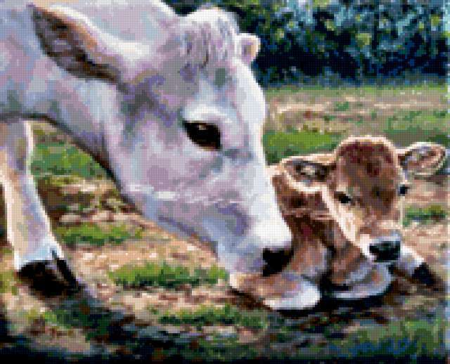 Ориентировочно так, схема вышивки «Countryside», созданная автором aniela, будет выглядеть при отшиве на канве. Размер данной вышивки равен 190x154 крестов, при этом используется 81 цветов. Ключевые слова, по которым можно найти эту схему: farm animals, country. Также, вы можете взглянуть на оригинальную картинку, соответствующую данной схеме вышивки.