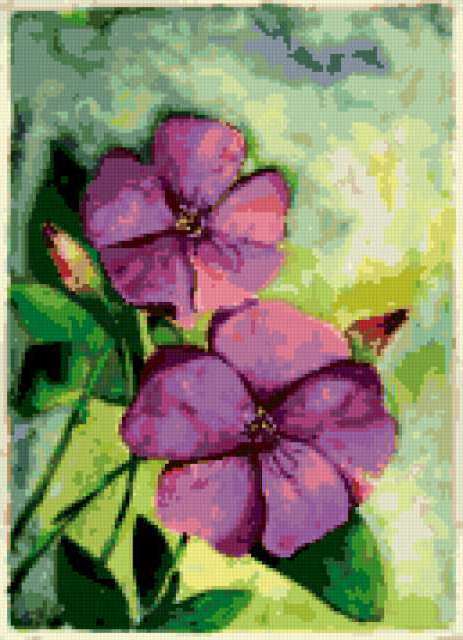 Ориентировочно так, схема вышивки «Cvetochki», созданная автором lukrecija12, будет выглядеть при отшиве на канве. Размер данной вышивки равен 129x178 крестов, при этом используется 51 цветов. Ключевые слова, по которым можно найти эту схему: cvety. Также, вы можете взглянуть на оригинальную картинку, соответствующую данной схеме вышивки.