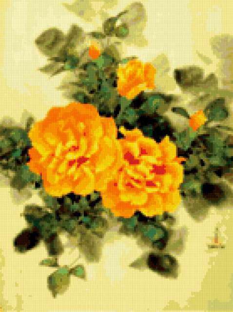 Ориентировочно так, схема вышивки «Cvetochki», созданная автором lukrecija12, будет выглядеть при отшиве на канве. Размер данной вышивки равен 139x186 крестов, при этом используется 46 цветов. Ключевые слова, по которым можно найти эту схему: cvety. Также, вы можете взглянуть на оригинальную картинку, соответствующую данной схеме вышивки.