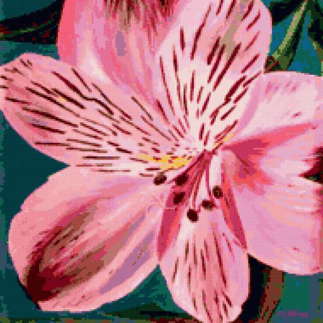 Ориентировочно так, схема вышивки «Cvetok», созданная автором lukrecija12, будет выглядеть при отшиве на канве. Размер данной вышивки равен 190x190 крестов, при этом используется 38 цветов. Ключевые слова, по которым можно найти эту схему: flower. Также, вы можете взглянуть на оригинальную картинку, соответствующую данной схеме вышивки.