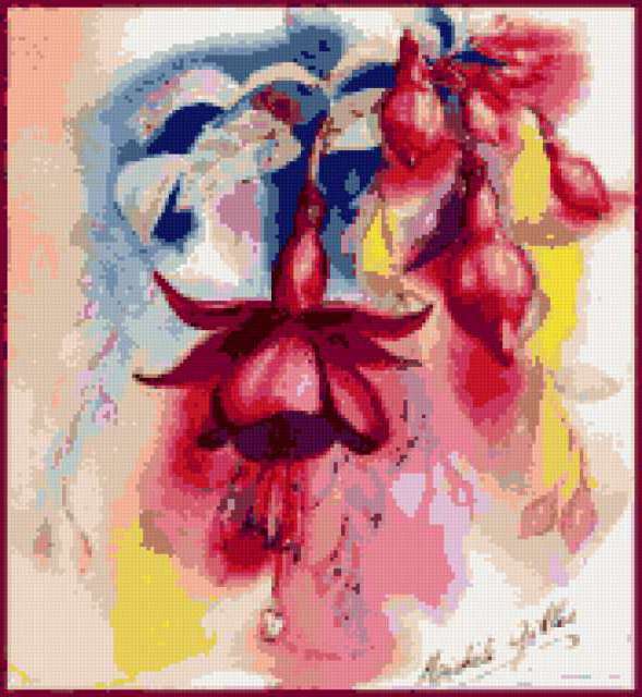 Ориентировочно так, схема вышивки «Cvety», созданная автором lukrecija12, будет выглядеть при отшиве на канве. Размер данной вышивки равен 175x190 крестов, при этом используется 29 цветов. Ключевые слова, по которым можно найти эту схему: cvety. Также, вы можете взглянуть на оригинальную картинку, соответствующую данной схеме вышивки.