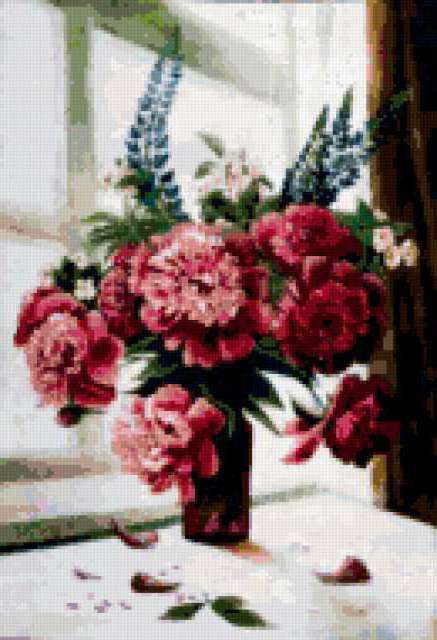 Ориентировочно так, схема вышивки «Cvety», созданная автором lukrecija12, будет выглядеть при отшиве на канве. Размер данной вышивки равен 130x190 крестов, при этом используется 57 цветов. Ключевые слова, по которым можно найти эту схему: flower. Также, вы можете взглянуть на оригинальную картинку, соответствующую данной схеме вышивки.