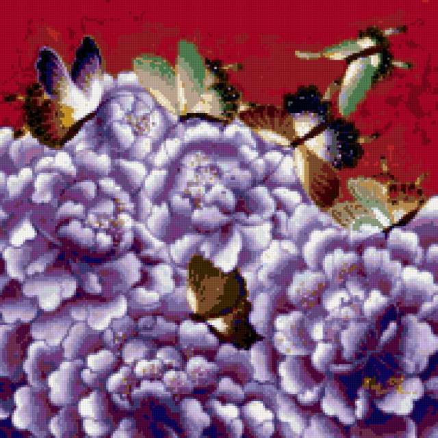 Ориентировочно так, схема вышивки «Cvety», созданная автором lukrecija12, будет выглядеть при отшиве на канве. Размер данной вышивки равен 190x190 крестов, при этом используется 42 цветов. Ключевые слова, по которым можно найти эту схему: flower. Также, вы можете взглянуть на оригинальную картинку, соответствующую данной схеме вышивки.