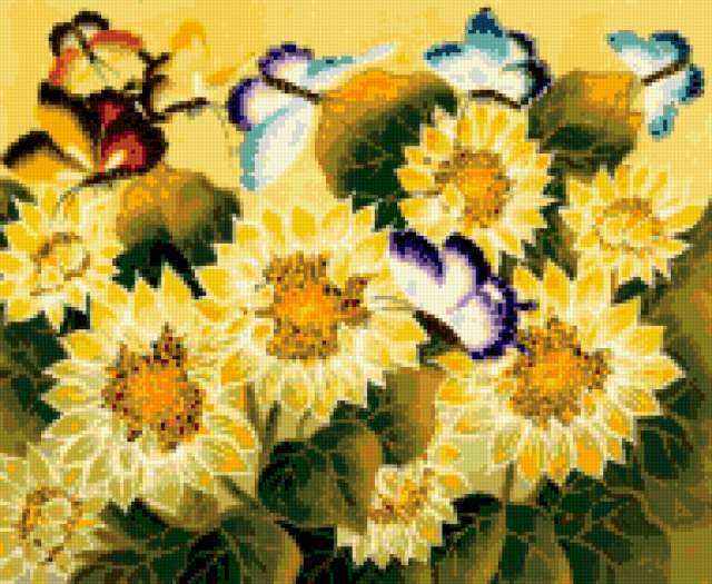Ориентировочно так, схема вышивки «Cvety», созданная автором lukrecija12, будет выглядеть при отшиве на канве. Размер данной вышивки равен 190x156 крестов, при этом используется 46 цветов. Ключевые слова, по которым можно найти эту схему: flower. Также, вы можете взглянуть на оригинальную картинку, соответствующую данной схеме вышивки.