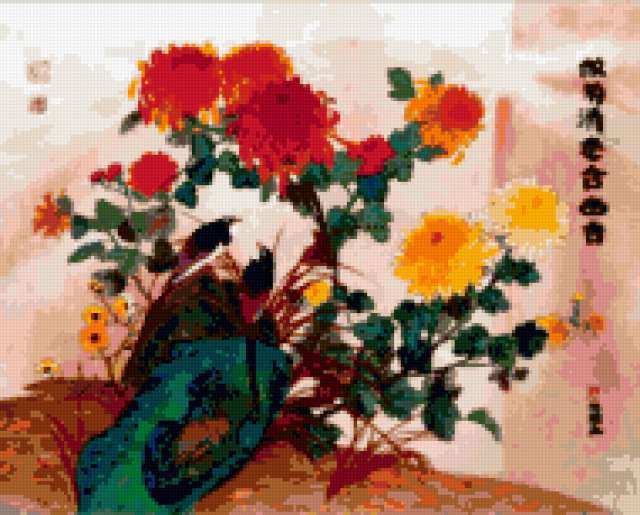 Ориентировочно так, схема вышивки «Cvety», созданная автором lukrecija12, будет выглядеть при отшиве на канве. Размер данной вышивки равен 190x153 крестов, при этом используется 52 цветов. Ключевые слова, по которым можно найти эту схему: flower. Также, вы можете взглянуть на оригинальную картинку, соответствующую данной схеме вышивки.