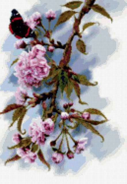 Ориентировочно так, схема вышивки «Cvety», созданная автором lukrecija12, будет выглядеть при отшиве на канве. Размер данной вышивки равен 129x187 крестов, при этом используется 58 цветов. Ключевые слова, по которым можно найти эту схему: flower. Также, вы можете взглянуть на оригинальную картинку, соответствующую данной схеме вышивки.