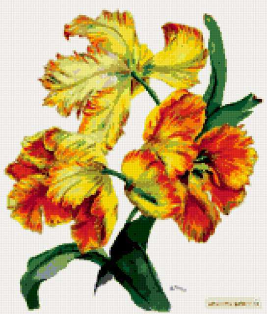 Ориентировочно так, схема вышивки «Cvety», созданная автором lukrecija12, будет выглядеть при отшиве на канве. Размер данной вышивки равен 159x187 крестов, при этом используется 40 цветов. Ключевые слова, по которым можно найти эту схему: cvety. Также, вы можете взглянуть на оригинальную картинку, соответствующую данной схеме вышивки.