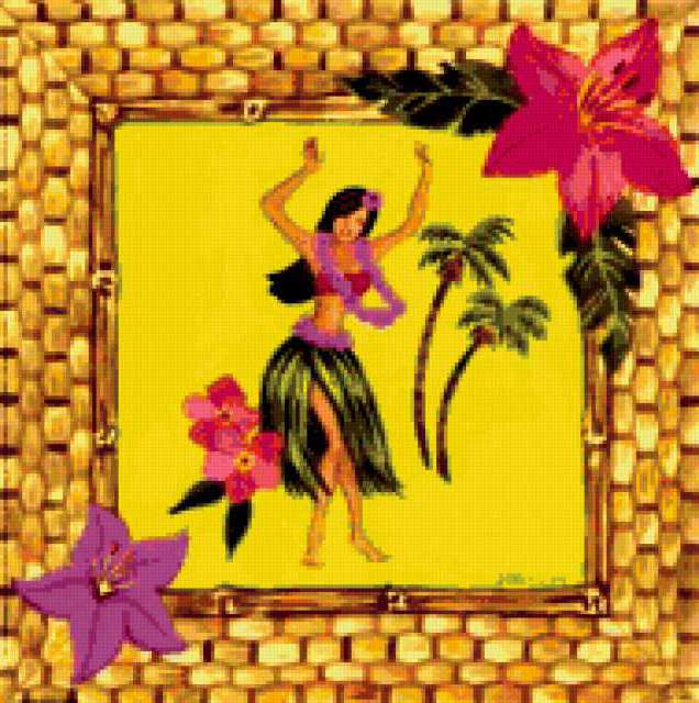 Ориентировочно так, схема вышивки «Dancer», созданная автором aniela, будет выглядеть при отшиве на канве. Размер данной вышивки равен 189x190 крестов, при этом используется 63 цветов. Ключевые слова, по которым можно найти эту схему: lady, woman, женщина, девушка, дамa. Также, вы можете взглянуть на оригинальную картинку, соответствующую данной схеме вышивки.