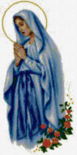 Ориентировочно так, схема вышивки «Deva Marija», созданная автором lukrecija12, будет выглядеть при отшиве на канве. Размер данной вышивки равен 95x190 крестов, при этом используется 37 цветов. Ключевые слова, по которым можно найти эту схему: women, religija. Также, вы можете взглянуть на оригинальную картинку, соответствующую данной схеме вышивки.