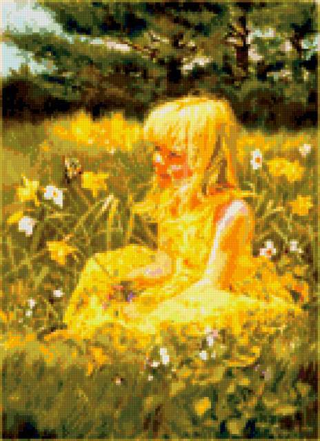 Ориентировочно так, схема вышивки «Devochka», созданная автором lukrecija12, будет выглядеть при отшиве на канве. Размер данной вышивки равен 138x190 крестов, при этом используется 54 цветов. Ключевые слова, по которым можно найти эту схему: deti, rebionok. Также, вы можете взглянуть на оригинальную картинку, соответствующую данной схеме вышивки.