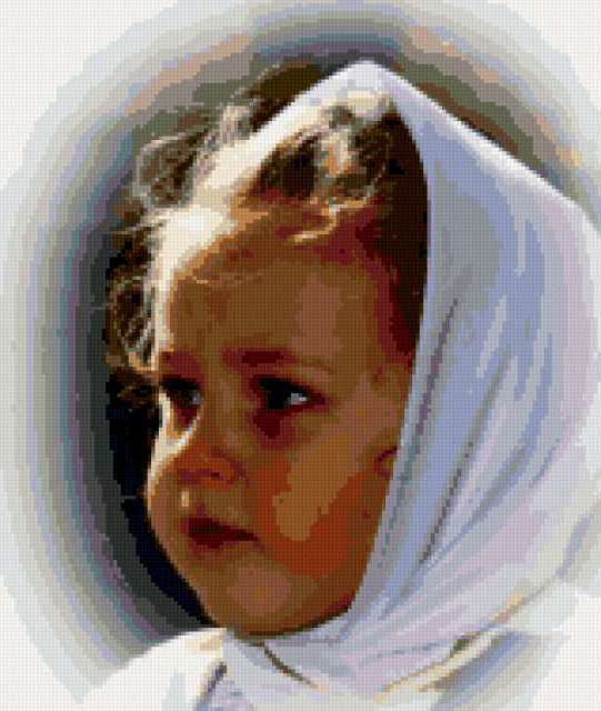 Ориентировочно так, схема вышивки «Devochka», созданная автором lukrecija12, будет выглядеть при отшиве на канве. Размер данной вышивки равен 159x188 крестов, при этом используется 38 цветов. Ключевые слова, по которым можно найти эту схему: deti, rebionok. Также, вы можете взглянуть на оригинальную картинку, соответствующую данной схеме вышивки.