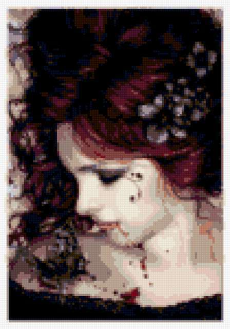 Ориентировочно так, схема вышивки «Dora», созданная автором armonia, будет выглядеть при отшиве на канве. Размер данной вышивки равен 105x150 крестов, при этом используется 26 цветов. К несчастью, автор не назначил для схемы ключевые слова. Также, вы можете взглянуть на оригинальную картинку, соответствующую данной схеме вышивки.