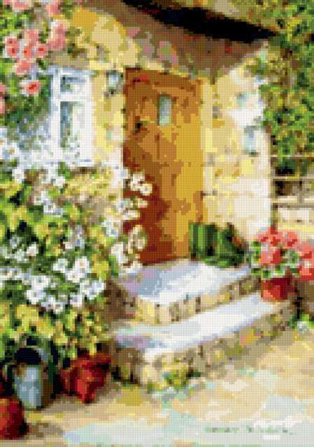 Ориентировочно так, схема вышивки «Dvorik», созданная автором lukrecija12, будет выглядеть при отшиве на канве. Размер данной вышивки равен 130x185 крестов, при этом используется 61 цветов. Ключевые слова, по которым можно найти эту схему: priroda. Также, вы можете взглянуть на оригинальную картинку, соответствующую данной схеме вышивки.