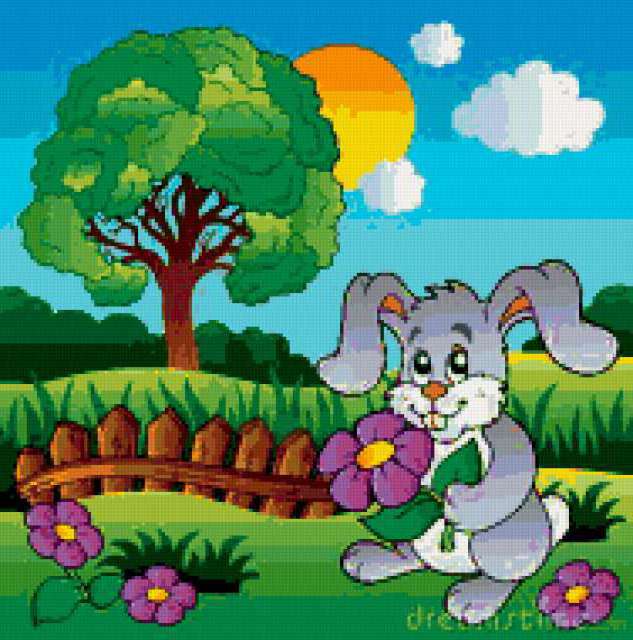 Ориентировочно так, схема вышивки «Easter», созданная автором aniela, будет выглядеть при отшиве на канве. Размер данной вышивки равен 188x190 крестов, при этом используется 63 цветов. Ключевые слова, по которым можно найти эту схему: easter. Также, вы можете взглянуть на оригинальную картинку, соответствующую данной схеме вышивки.