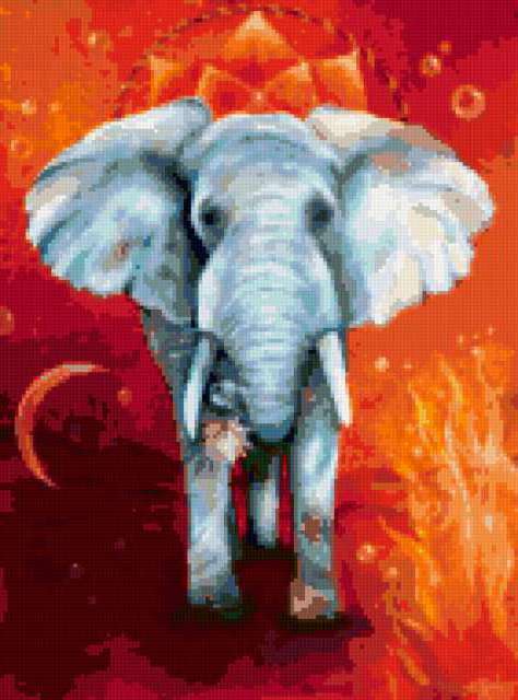 Ориентировочно так, схема вышивки «Elephant», созданная автором pandreevska, будет выглядеть при отшиве на канве. Размер данной вышивки равен 141x190 крестов, при этом используется 54 цветов. Ключевые слова, по которым можно найти эту схему: animals, elephant. Также, вы можете взглянуть на оригинальную картинку, соответствующую данной схеме вышивки.