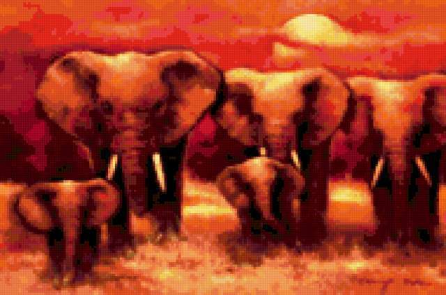 Ориентировочно так, схема вышивки «Elephant», созданная автором aniela, будет выглядеть при отшиве на канве. Размер данной вышивки равен 190x126 крестов, при этом используется 47 цветов. Ключевые слова, по которым можно найти эту схему: wildlife, animals, животные, слон. Также, вы можете взглянуть на оригинальную картинку, соответствующую данной схеме вышивки.