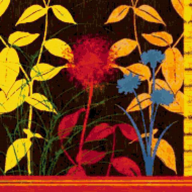 Ориентировочно так, схема вышивки «Exotic Decoration», созданная автором pandreevska, будет выглядеть при отшиве на канве. Размер данной вышивки равен 190x190 крестов, при этом используется 57 цветов. Ключевые слова, по которым можно найти эту схему: floral, exotic, декорация, рисунок. Также, вы можете взглянуть на оригинальную картинку, соответствующую данной схеме вышивки.
