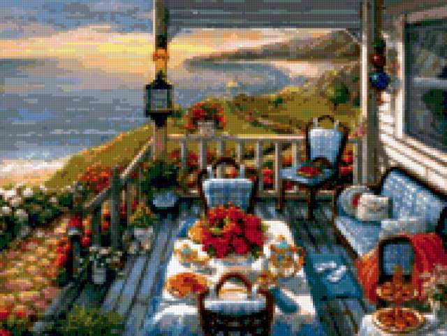 Ориентировочно так, схема вышивки «Exterior», созданная автором aniela, будет выглядеть при отшиве на канве. Размер данной вышивки равен 190x143 крестов, при этом используется 87 цветов. Ключевые слова, по которым можно найти эту схему: exterior. Также, вы можете взглянуть на оригинальную картинку, соответствующую данной схеме вышивки.