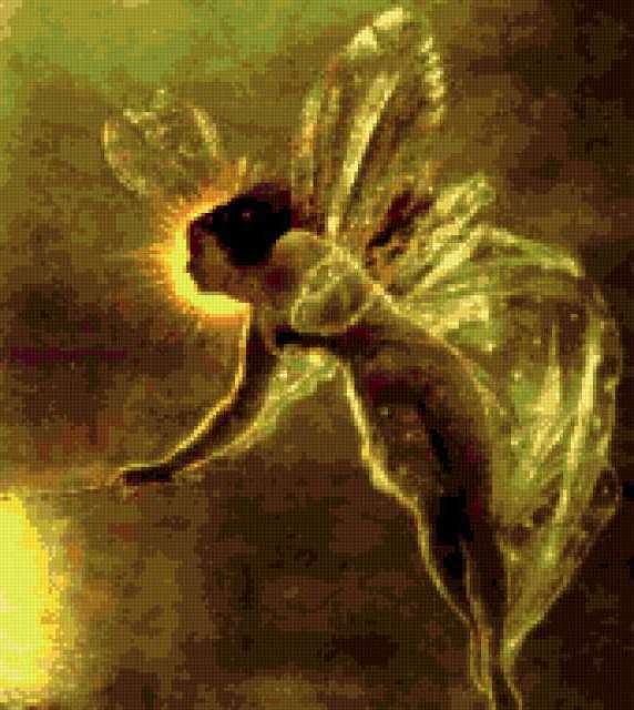 Ориентировочно так, схема вышивки «Fairy», созданная автором me4o, будет выглядеть при отшиве на канве. Размер данной вышивки равен 170x190 крестов, при этом используется 35 цветов. Ключевые слова, по которым можно найти эту схему: fairy tale, fairy, fantasy, сказка. Также, вы можете взглянуть на оригинальную картинку, соответствующую данной схеме вышивки.