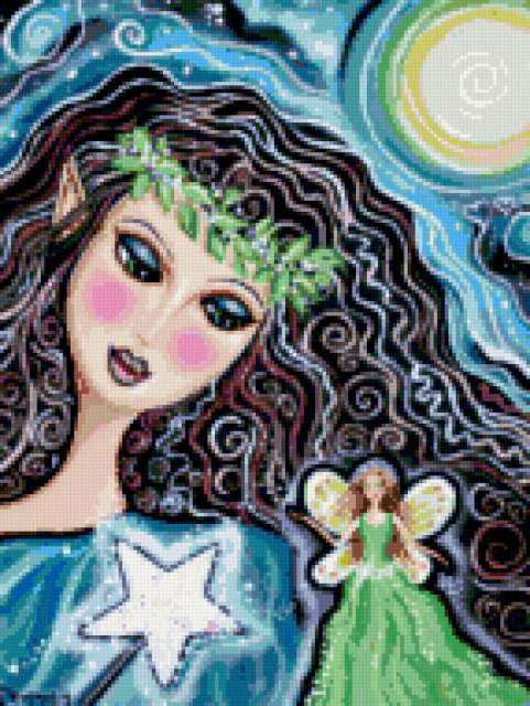 Ориентировочно так, схема вышивки «Fairytale Pictures», созданная автором pandreevska, будет выглядеть при отшиве на канве. Размер данной вышивки равен 143x190 крестов, при этом используется 61 цветов. Ключевые слова, по которым можно найти эту схему: fairytale, colorful, magic, stunning, dream. Также, вы можете взглянуть на оригинальную картинку, соответствующую данной схеме вышивки.