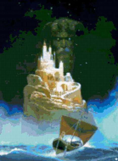 Ориентировочно так, схема вышивки «Fantasy», созданная автором nataliasop, будет выглядеть при отшиве на канве. Размер данной вышивки равен 139x190 крестов, при этом используется 59 цветов. Ключевые слова, по которым можно найти эту схему: fantasy. Также, вы можете взглянуть на оригинальную картинку, соответствующую данной схеме вышивки.