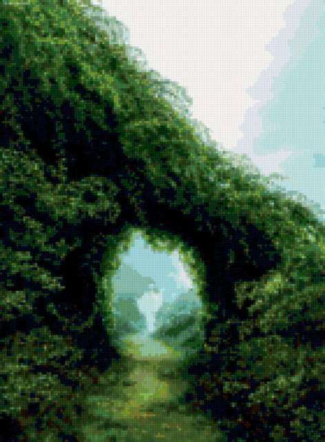 Ориентировочно так, схема вышивки «Fantasy», созданная автором nataliasop, будет выглядеть при отшиве на канве. Размер данной вышивки равен 140x190 крестов, при этом используется 45 цветов. Ключевые слова, по которым можно найти эту схему: fantasy. Также, вы можете взглянуть на оригинальную картинку, соответствующую данной схеме вышивки.