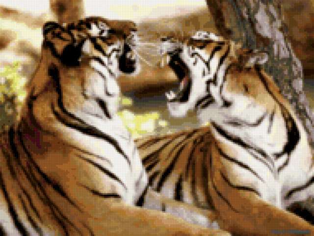Ориентировочно так, схема вышивки «Fight», созданная автором iborissova, будет выглядеть при отшиве на канве. Размер данной вышивки равен 190x143 крестов, при этом используется 75 цветов. Ключевые слова, по которым можно найти эту схему: animals. Также, вы можете взглянуть на оригинальную картинку, соответствующую данной схеме вышивки.
