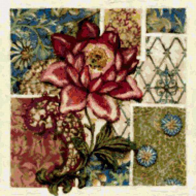 Ориентировочно так, схема вышивки «Floral Decoration», созданная автором pandreevska, будет выглядеть при отшиве на канве. Размер данной вышивки равен 190x190 крестов, при этом используется 61 цветов. Ключевые слова, по которым можно найти эту схему: flowers, decoration, bright, duo . Также, вы можете взглянуть на оригинальную картинку, соответствующую данной схеме вышивки.