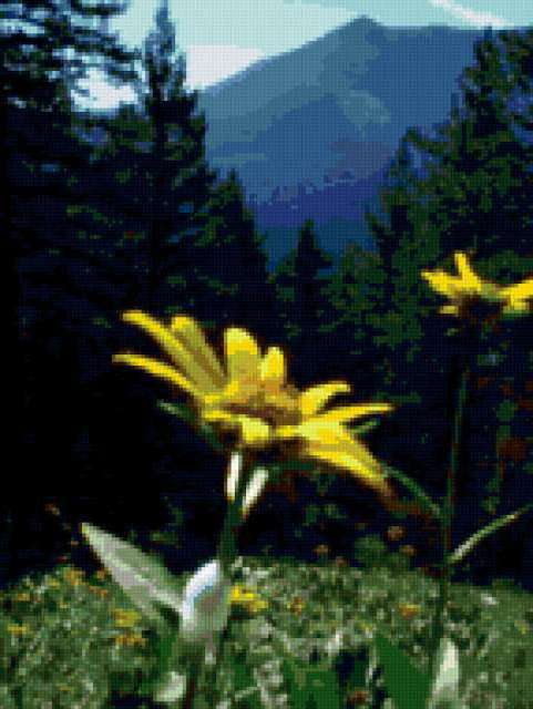 Ориентировочно так, схема вышивки «Flower...», созданная автором nastiusha, будет выглядеть при отшиве на канве. Размер данной вышивки равен 143x190 крестов, при этом используется 60 цветов. К несчастью, автор не назначил для схемы ключевые слова. Также, вы можете взглянуть на оригинальную картинку, соответствующую данной схеме вышивки.