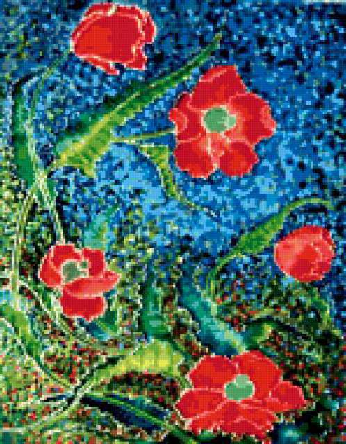 Ориентировочно так, схема вышивки «Flowers», созданная автором aniela, будет выглядеть при отшиве на канве. Размер данной вышивки равен 148x190 крестов, при этом используется 75 цветов. Ключевые слова, по которым можно найти эту схему: цветы, flowers. Также, вы можете взглянуть на оригинальную картинку, соответствующую данной схеме вышивки.