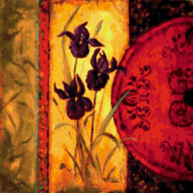 Ориентировочно так, схема вышивки «Flowers», созданная автором aniela, будет выглядеть при отшиве на канве. Размер данной вышивки равен 190x190 крестов, при этом используется 59 цветов. Ключевые слова, по которым можно найти эту схему: decoration, flowers. Также, вы можете взглянуть на оригинальную картинку, соответствующую данной схеме вышивки.
