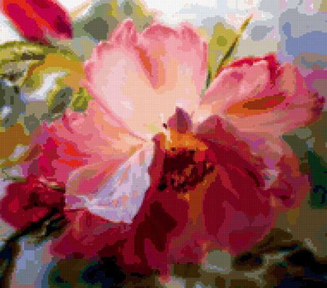 Ориентировочно так, схема вышивки «Flowers», созданная автором Leanhaum-shee, будет выглядеть при отшиве на канве. Размер данной вышивки равен 190x168 крестов, при этом используется 88 цветов. Ключевые слова, по которым можно найти эту схему: природа, цветы. Также, вы можете взглянуть на оригинальную картинку, соответствующую данной схеме вышивки.