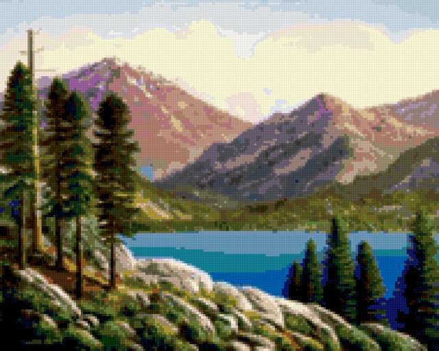 Ориентировочно так, схема вышивки «Frank Wilson», созданная автором Fardo, будет выглядеть при отшиве на канве. Размер данной вышивки равен 190x152 крестов, при этом используется 53 цветов. Ключевые слова, по которым можно найти эту схему: пейзажи, природа, лето, вода, frank wilson. Также, вы можете взглянуть на оригинальную картинку, соответствующую данной схеме вышивки.