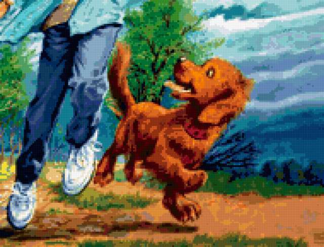 Ориентировочно так, схема вышивки «Friends», созданная автором aniela, будет выглядеть при отшиве на канве. Размер данной вышивки равен 190x145 крестов, при этом используется 83 цветов. Ключевые слова, по которым можно найти эту схему: животные, pets, animals. Также, вы можете взглянуть на оригинальную картинку, соответствующую данной схеме вышивки.