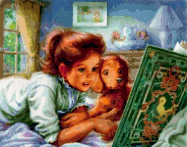 Ориентировочно так, схема вышивки «Friends», созданная автором aniela, будет выглядеть при отшиве на канве. Размер данной вышивки равен 190x150 крестов, при этом используется 86 цветов. Ключевые слова, по которым можно найти эту схему: девочка, girl. Также, вы можете взглянуть на оригинальную картинку, соответствующую данной схеме вышивки.