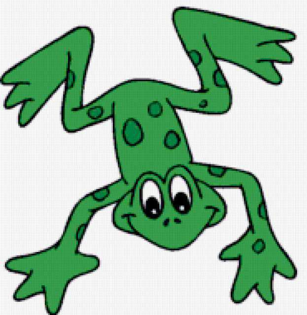 Ориентировочно так, схема вышивки «Frog», созданная автором aniela, будет выглядеть при отшиве на канве. Размер данной вышивки равен 185x190 крестов, при этом используется 39 цветов. Ключевые слова, по которым можно найти эту схему: wildlife, animals, животные. Также, вы можете взглянуть на оригинальную картинку, соответствующую данной схеме вышивки.