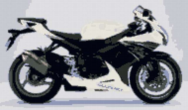 Ориентировочно так, схема вышивки «GSX-R600», созданная автором kozina-leha, будет выглядеть при отшиве на канве. Размер данной вышивки равен 190x111 крестов, при этом используется 10 цветов. Ключевые слова, по которым можно найти эту схему: мото. Также, вы можете взглянуть на оригинальную картинку, соответствующую данной схеме вышивки.