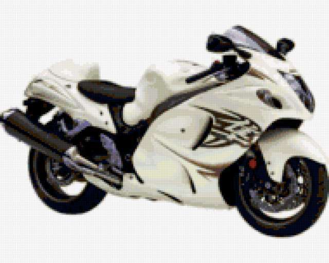 Ориентировочно так, схема вышивки «GSX1300R», созданная автором kozina-leha, будет выглядеть при отшиве на канве. Размер данной вышивки равен 190x152 крестов, при этом используется 50 цветов. Ключевые слова, по которым можно найти эту схему: мото. Также, вы можете взглянуть на оригинальную картинку, соответствующую данной схеме вышивки.