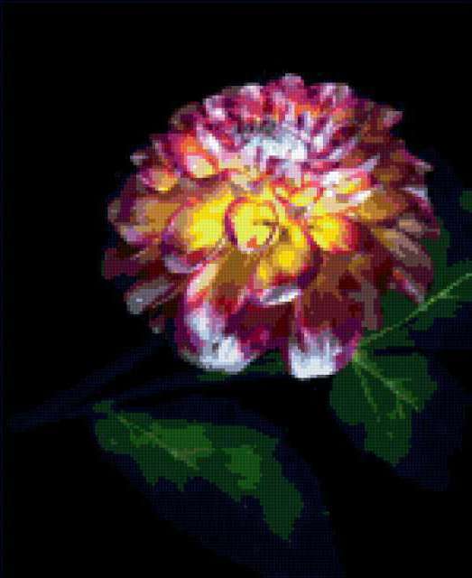 Ориентировочно так, схема вышивки «Georgin», созданная автором lukrecija12, будет выглядеть при отшиве на канве. Размер данной вышивки равен 149x182 крестов, при этом используется 52 цветов. Ключевые слова, по которым можно найти эту схему: cvety. Также, вы можете взглянуть на оригинальную картинку, соответствующую данной схеме вышивки.