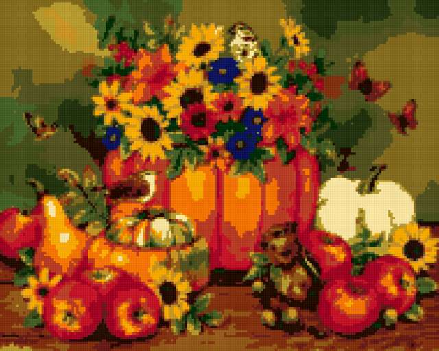 Ориентировочно так, схема вышивки «Gh», созданная автором X-14-15, будет выглядеть при отшиве на канве. Размер данной вышивки равен 190x152 крестов, при этом используется 20 цветов. К несчастью, автор не назначил для схемы ключевые слова. Также, вы можете взглянуть на оригинальную картинку, соответствующую данной схеме вышивки.