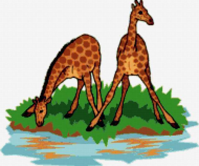 Ориентировочно так, схема вышивки «Giraffe», созданная автором aniela, будет выглядеть при отшиве на канве. Размер данной вышивки равен 190x158 крестов, при этом используется 63 цветов. Ключевые слова, по которым можно найти эту схему: wildlife, animals, животные. Также, вы можете взглянуть на оригинальную картинку, соответствующую данной схеме вышивки.