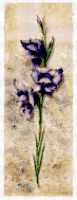 Ориентировочно так, схема вышивки «Gladiolus», созданная автором lukrecija12, будет выглядеть при отшиве на канве. Размер данной вышивки равен 73x189 крестов, при этом используется 27 цветов. Ключевые слова, по которым можно найти эту схему: flower. Также, вы можете взглянуть на оригинальную картинку, соответствующую данной схеме вышивки.