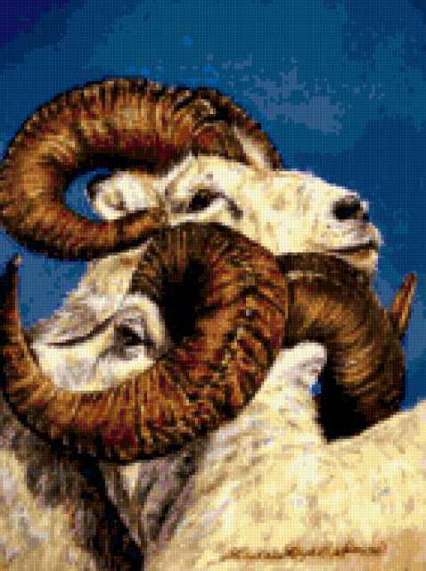 Ориентировочно так, схема вышивки «Goat», созданная автором aniela, будет выглядеть при отшиве на канве. Размер данной вышивки равен 142x190 крестов, при этом используется 67 цветов. Ключевые слова, по которым можно найти эту схему: wildlife, animals, животные. Также, вы можете взглянуть на оригинальную картинку, соответствующую данной схеме вышивки.