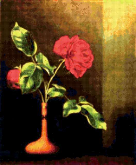 Ориентировочно так, схема вышивки «Heade», созданная автором iborissova, будет выглядеть при отшиве на канве. Размер данной вышивки равен 157x190 крестов, при этом используется 68 цветов. Ключевые слова, по которым можно найти эту схему: рози, цветы. Также, вы можете взглянуть на оригинальную картинку, соответствующую данной схеме вышивки.