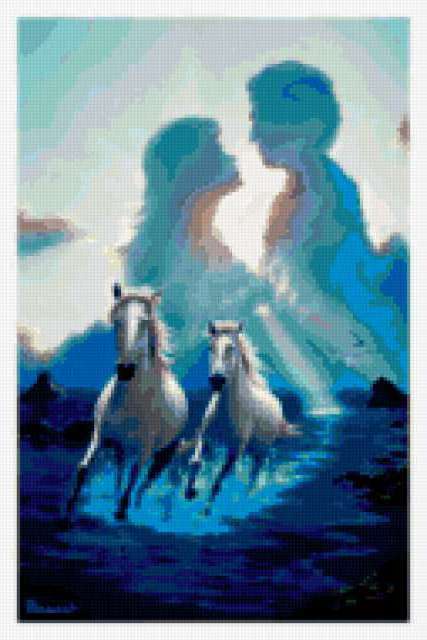 Ориентировочно так, схема вышивки «Horses», созданная автором aniela, будет выглядеть при отшиве на канве. Размер данной вышивки равен 127x190 крестов, при этом используется 57 цветов. Ключевые слова, по которым можно найти эту схему: wildlife, animals, животные, лощадь. Также, вы можете взглянуть на оригинальную картинку, соответствующую данной схеме вышивки.