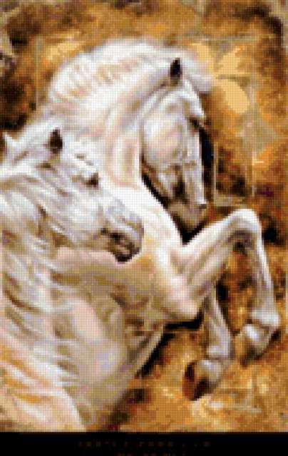 Ориентировочно так, схема вышивки «Horses», созданная автором aniela, будет выглядеть при отшиве на канве. Размер данной вышивки равен 120x190 крестов, при этом используется 71 цветов. Ключевые слова, по которым можно найти эту схему: wildlife, animals, животные, лощадь. Также, вы можете взглянуть на оригинальную картинку, соответствующую данной схеме вышивки.