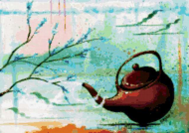 Ориентировочно так, схема вышивки «Hot drink», созданная автором aniela, будет выглядеть при отшиве на канве. Размер данной вышивки равен 190x134 крестов, при этом используется 67 цветов. Ключевые слова, по которым можно найти эту схему: натюрморт, naturmort, still life. Также, вы можете взглянуть на оригинальную картинку, соответствующую данной схеме вышивки.